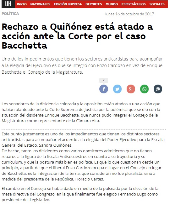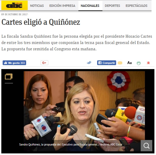 Cartes eligió a Quiñónez