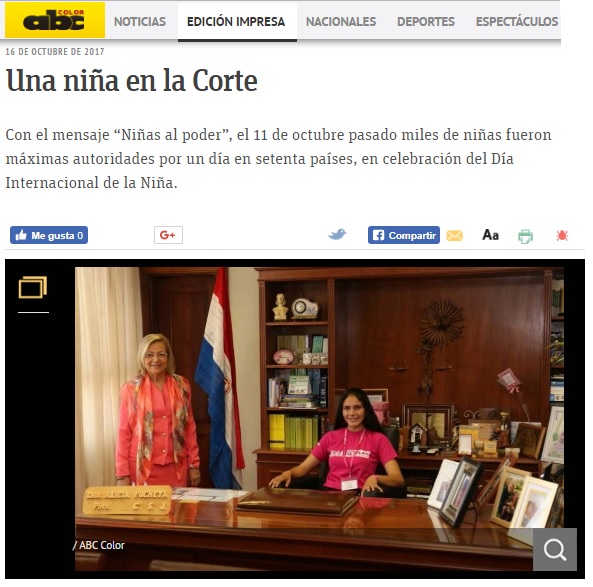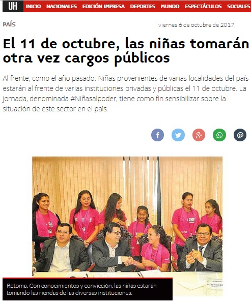 El 11 de octubre, las niñas tomarán otra vez cargos públicos