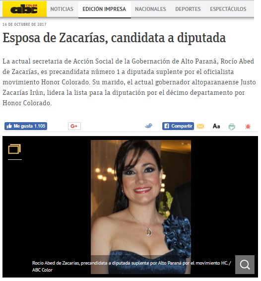 Esposa de Zacarías, candidata a diputada