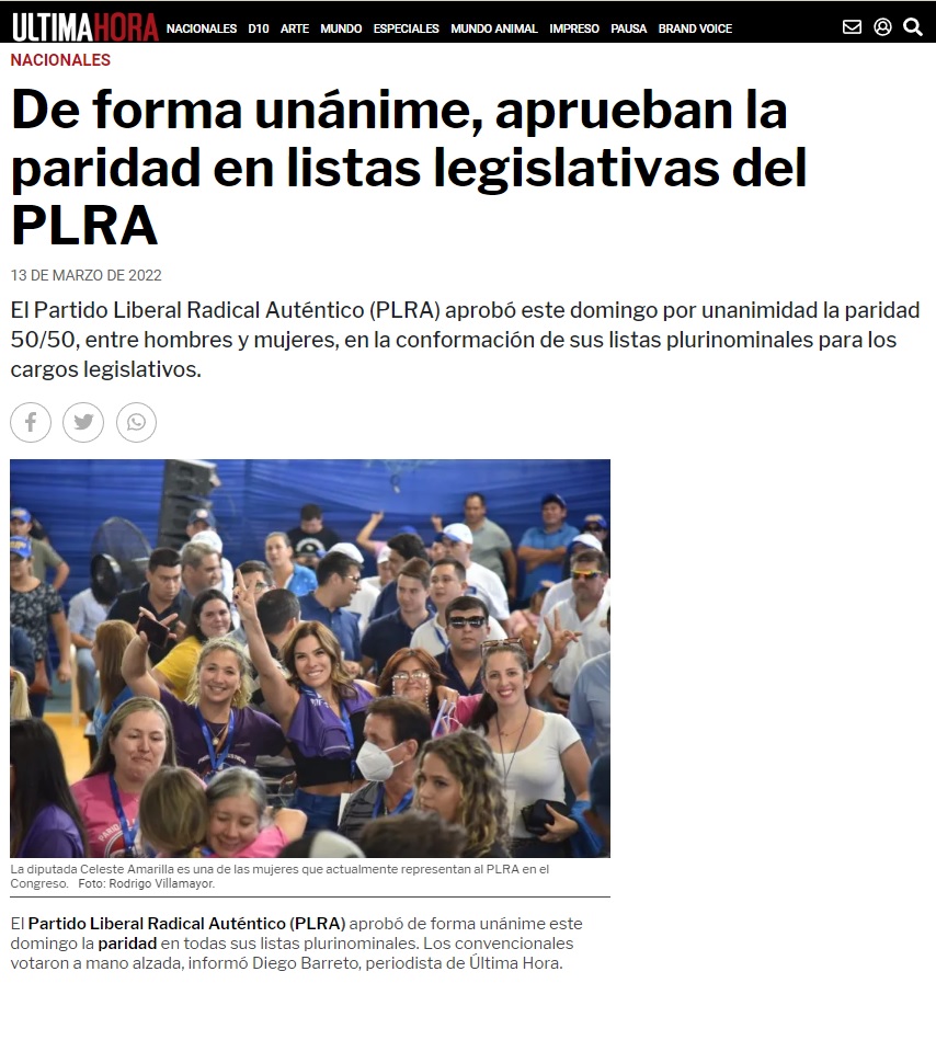 PLRA aprueba paridad 50/50 para sus listas y decisión es aplaudida