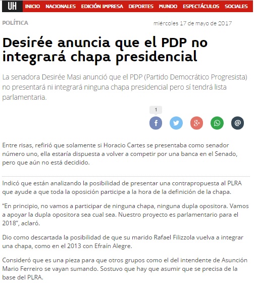 Desirée anuncia que el PDP no integrará chapa presidencial