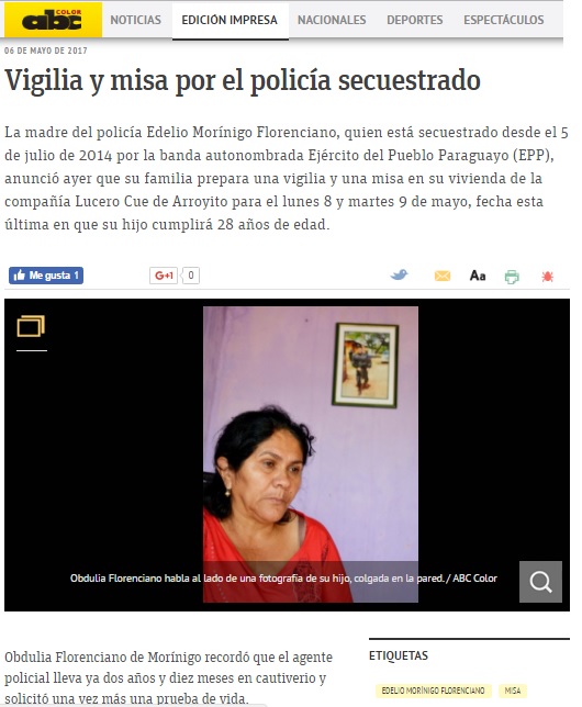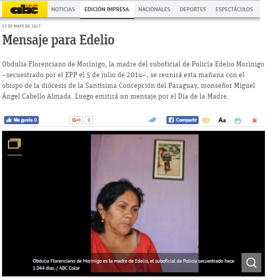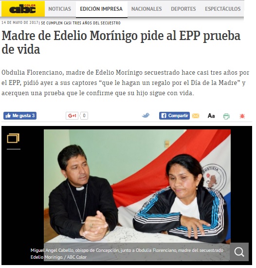 Madre de Edelio Morínigo pide al EPP prueba de vida