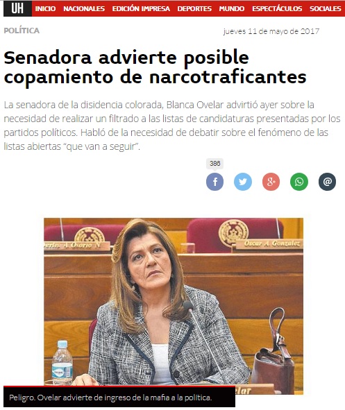 Senadora advierte posible copamiento de narcotraficantes