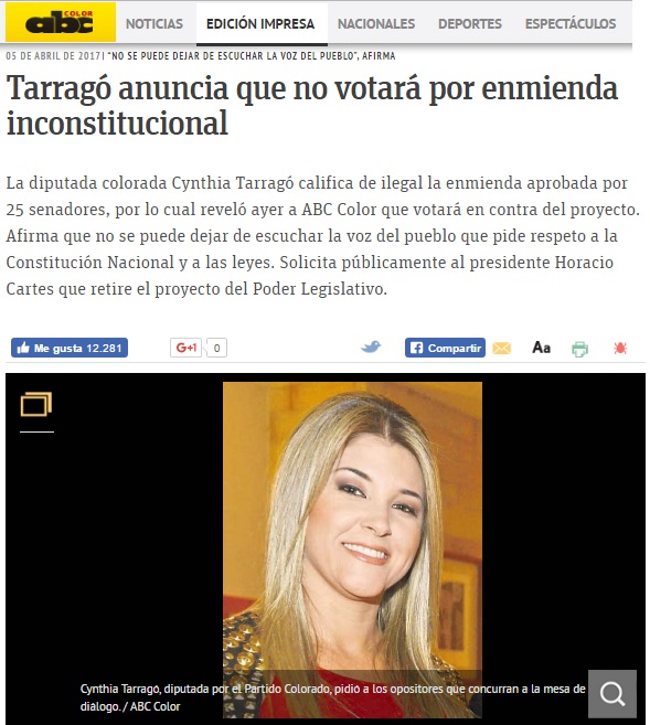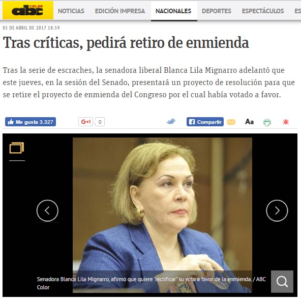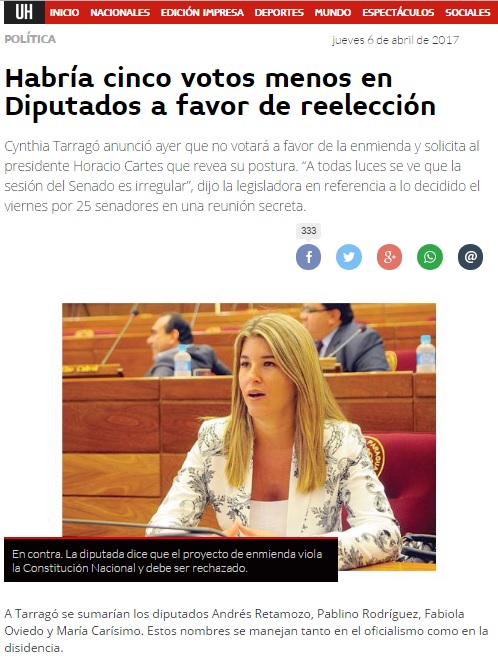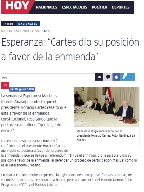 Esperanza: “Cartes dio su posición a favor de la enmienda”
