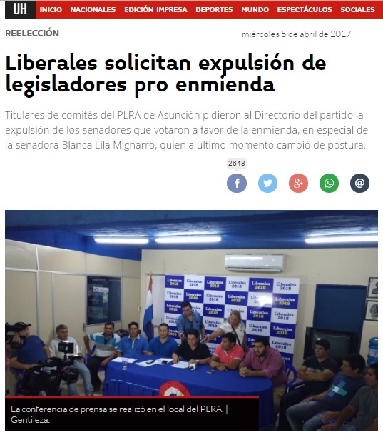 Liberales solicitan expulsión de legisladores pro enmienda