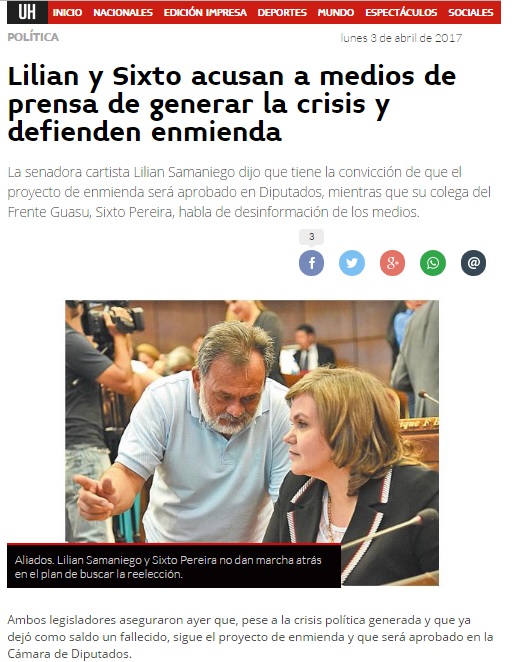 Lilian y Sixto acusan a medios de prensa de generar la crisis y defienden enmienda