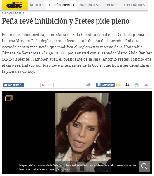 Peña revé inhibición y Fretes pide pleno