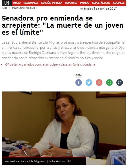 Senadora pro enmienda se arrepiente: "La muerte de un joven es el límite"