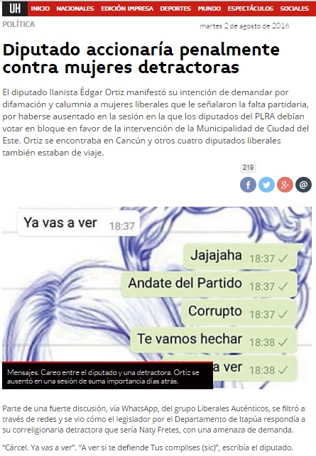 Diputado accionaría penalmente contra mujeres detractoras