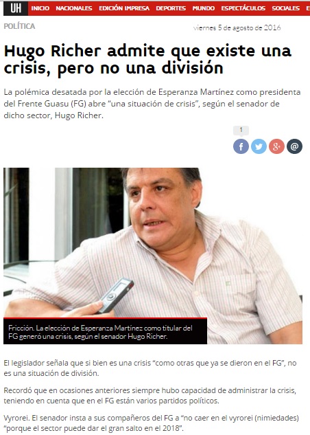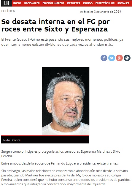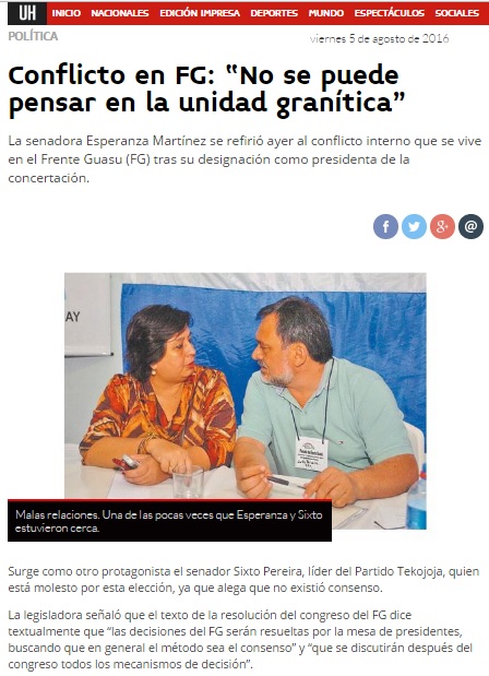 Se desata interna en el FG por roces entre Sixto y Esperanza