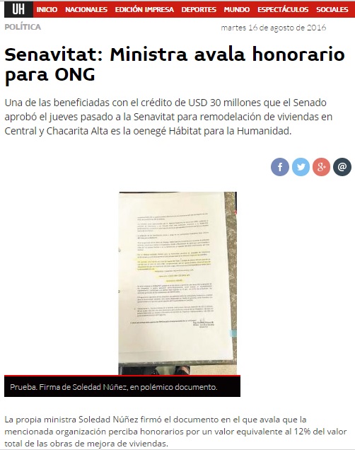 Senavitat: Ministra avala honorario para ONG