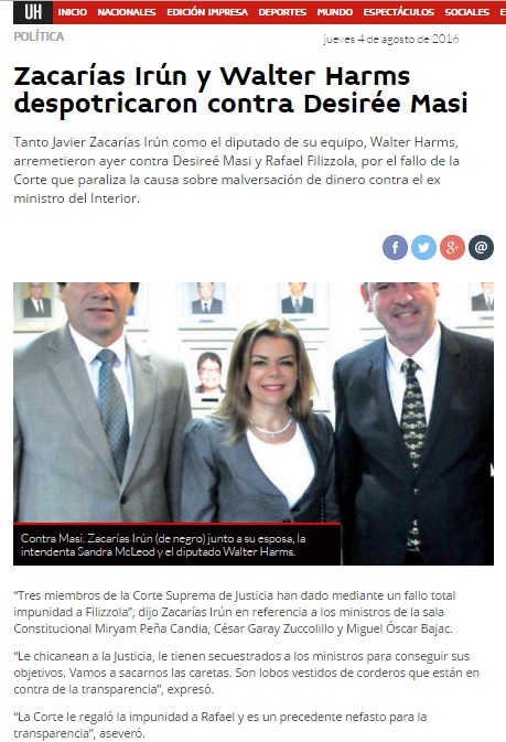 Zacarías Irún y Walter Harms despotricaron contra Desirée Masi