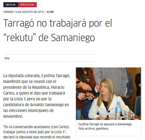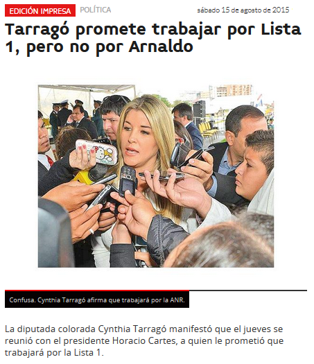 Tarragó promete trabajar por Lista 1, pero no por Arnaldo