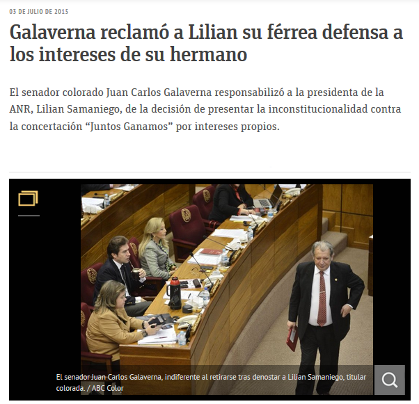 Galaverna reclamó a Lilian su férrea defensa a los intereses de su hermano
