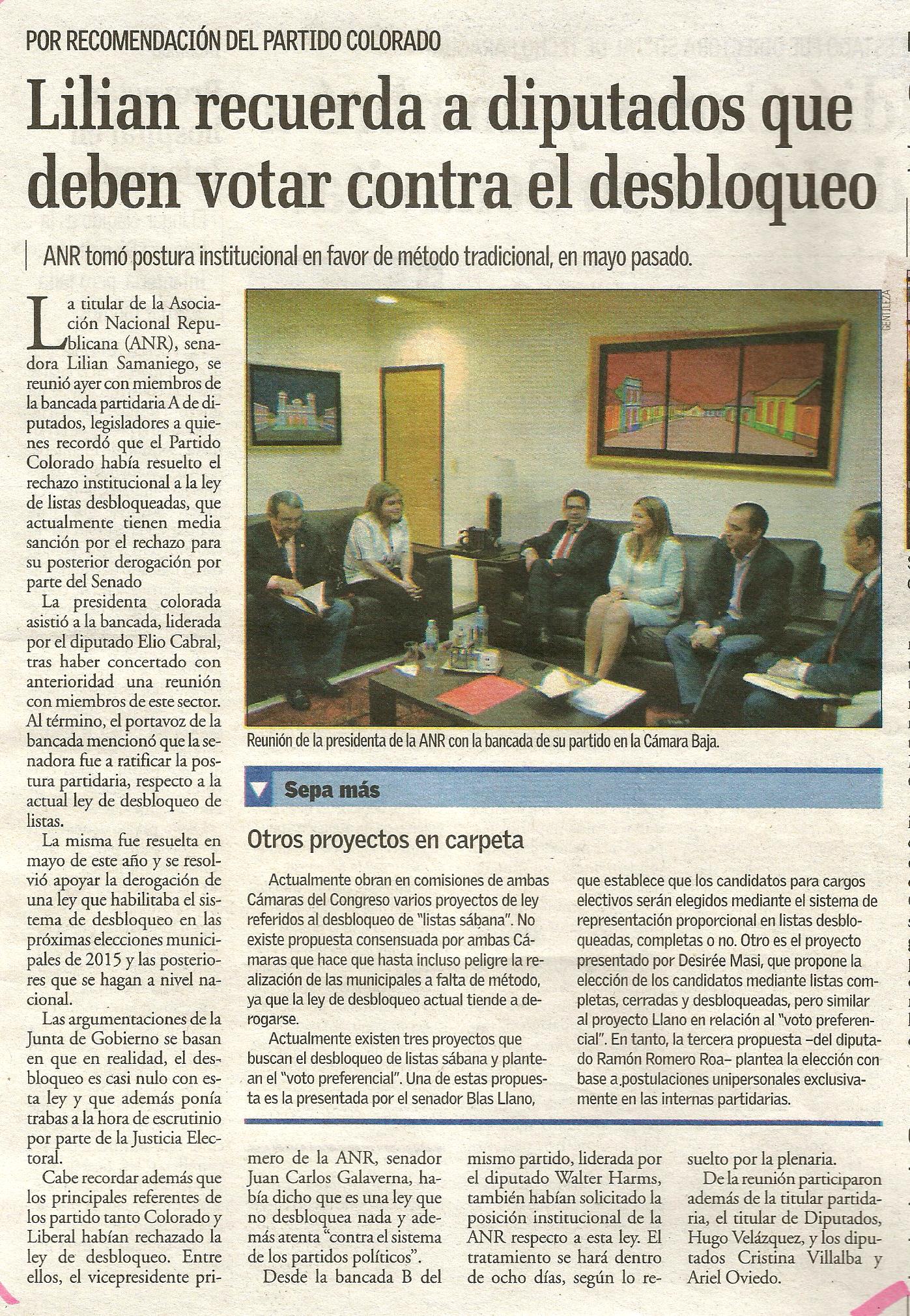 Lilian recuerda a diputados que deben votar contra desbloqueo