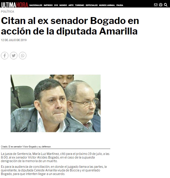 Citan al ex senador Bogado en acción de la diputada Amarilla