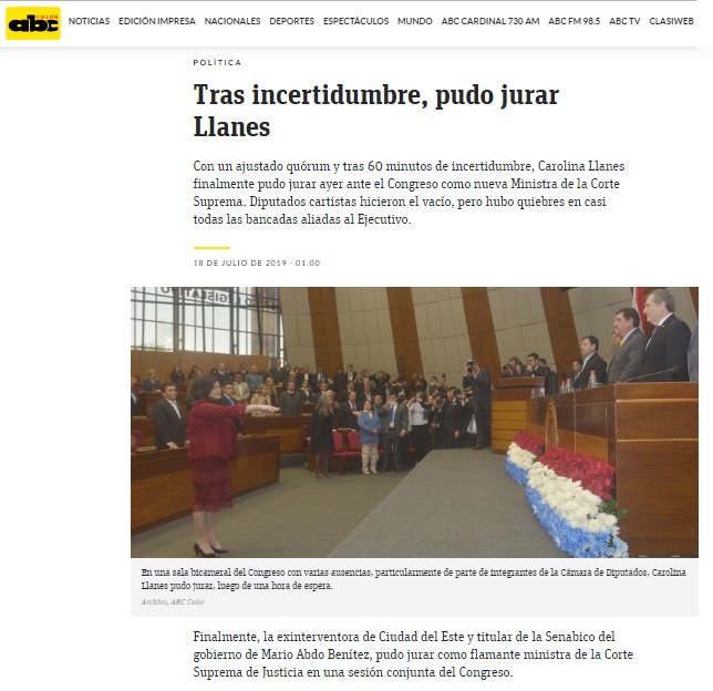 Fracasó intento de boicot para jura de Llanes como ministra de la CSJ