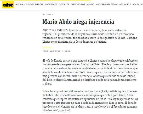 Mario Abdo niega injerencia