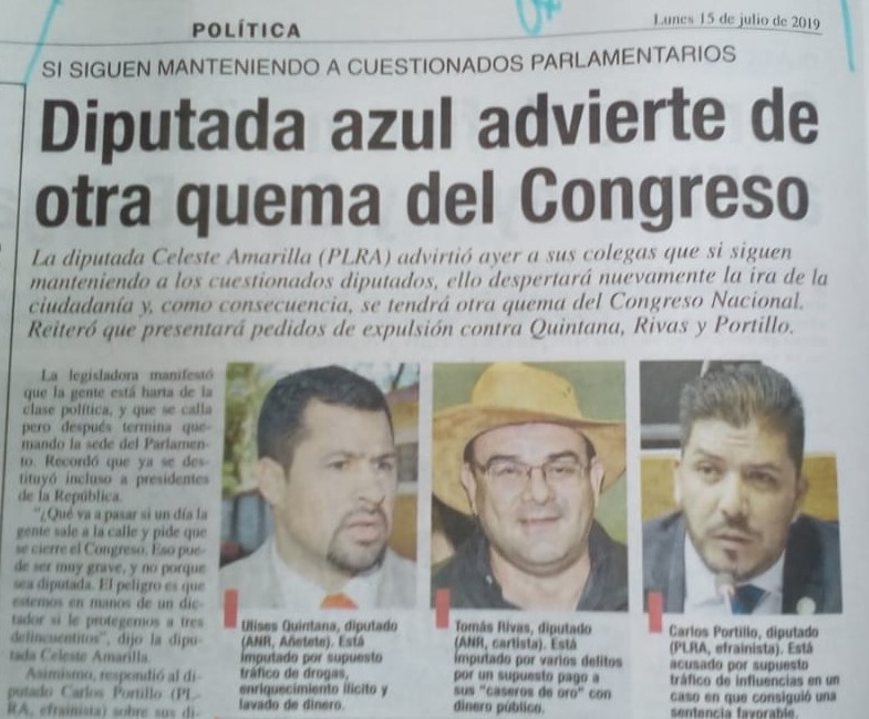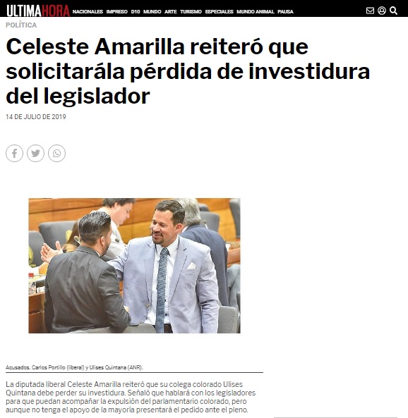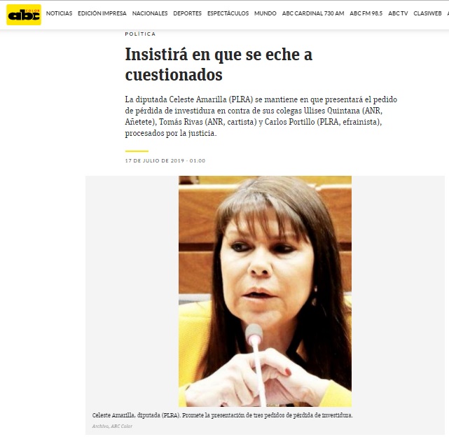 Celeste Amarilla reiteró que solicitarála pérdida de investidura del legislador