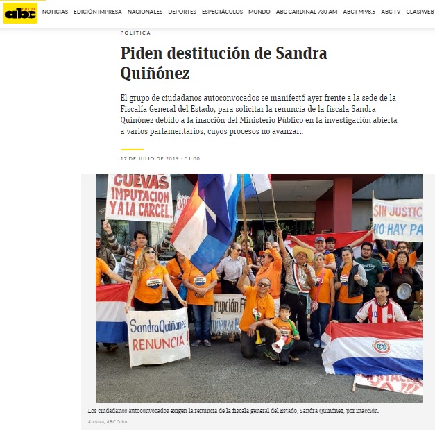 Piden destitución de Sandra Quiñónez