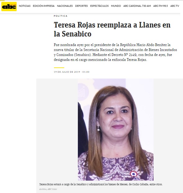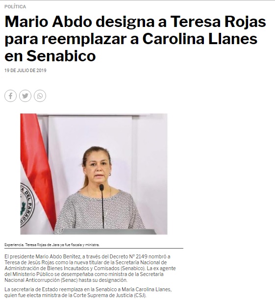 Mario Abdo designa a Teresa Rojas para reemplazar a Carolina Llanes en Senabico