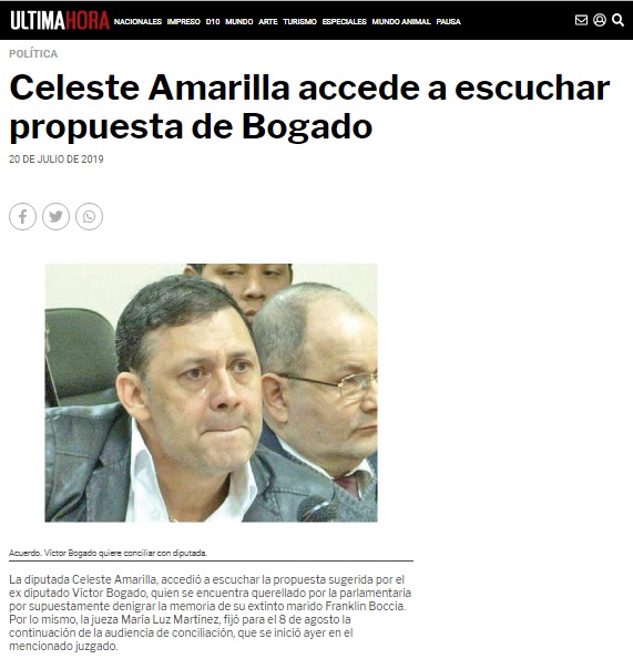 Celeste Amarilla accede a escuchar propuesta de Bogado