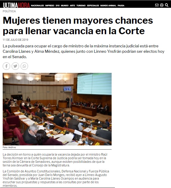 Mujeres tienen mayores chances para llenar vacancia en la Corte