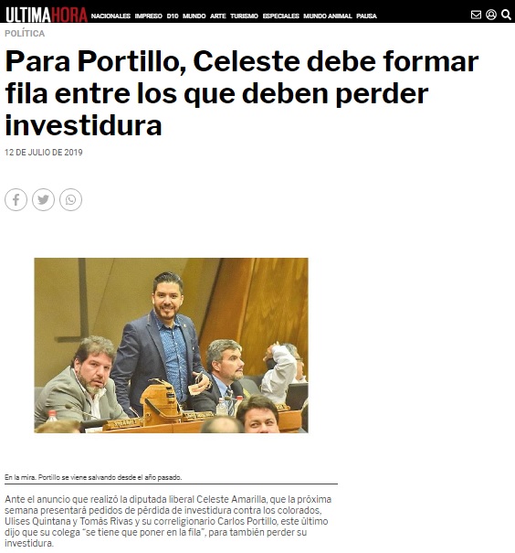 Para Portillo, Celeste debe formar fila entre los que deben perder investidura